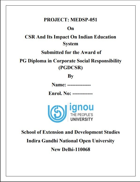 Buy IGNOU MEDSP-051 CSR And Its Impact On Indian Education System Project Report Hardcopy – 100% Approved & Plagiarism-Free