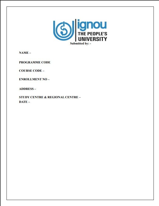 1. Title Page: Include your name, enrollment number, study center code, and other essential details.
