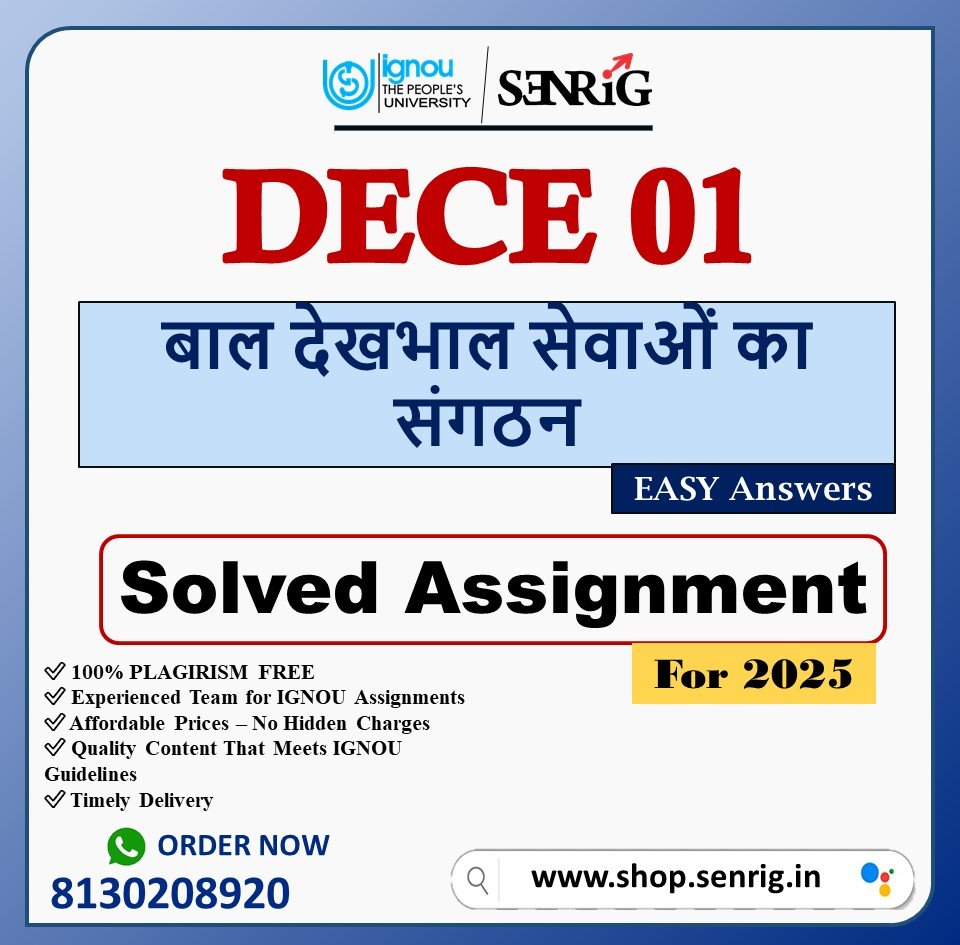 DECE 01 Solved Assignment 2025 If you🌟 Struggling with Your DECE 01 बाल देखभाल सेवाओं का संगठन Assignments? We’ve Got Your Back! 🌟 IGNOU बाल देखभाल सेवाओं का संगठन (Latest PDF) Download ,DECE 01 assignment solution jan-july 2025. IGNOU DECE assignment 2025, DECE 01 assignment pdf. Buy Now and Get Best Results. DECE 01 solved assignment HINDI pdf download, buy DECE 01 latest assignment.