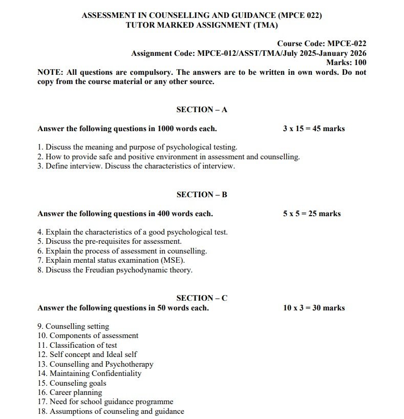IGNOU MPCE-022 Solved Assignment 2025-26 PDF (English) If you🌟 Struggling with Your IGNOU ASSESSMENT IN COUNSELLING AND GUIDANCE Assignments? We’ve Got Your Back! 🌟 IGNOU ASSESSMENT IN COUNSELLING AND GUIDANCE (Latest PDF) Download 2025-26 ,MPCE-022 assignment solution 2025-26. IGNOU MPCE-022 assignment 2025, IGNOU MPCE-022 Solved Assignment July 2025-Jan 2026 PDF (English). Buy Now and Get Best Results. MPCE-022 solved assignment English pdf download 2025-26, buy MPCE-022 latest assignment.