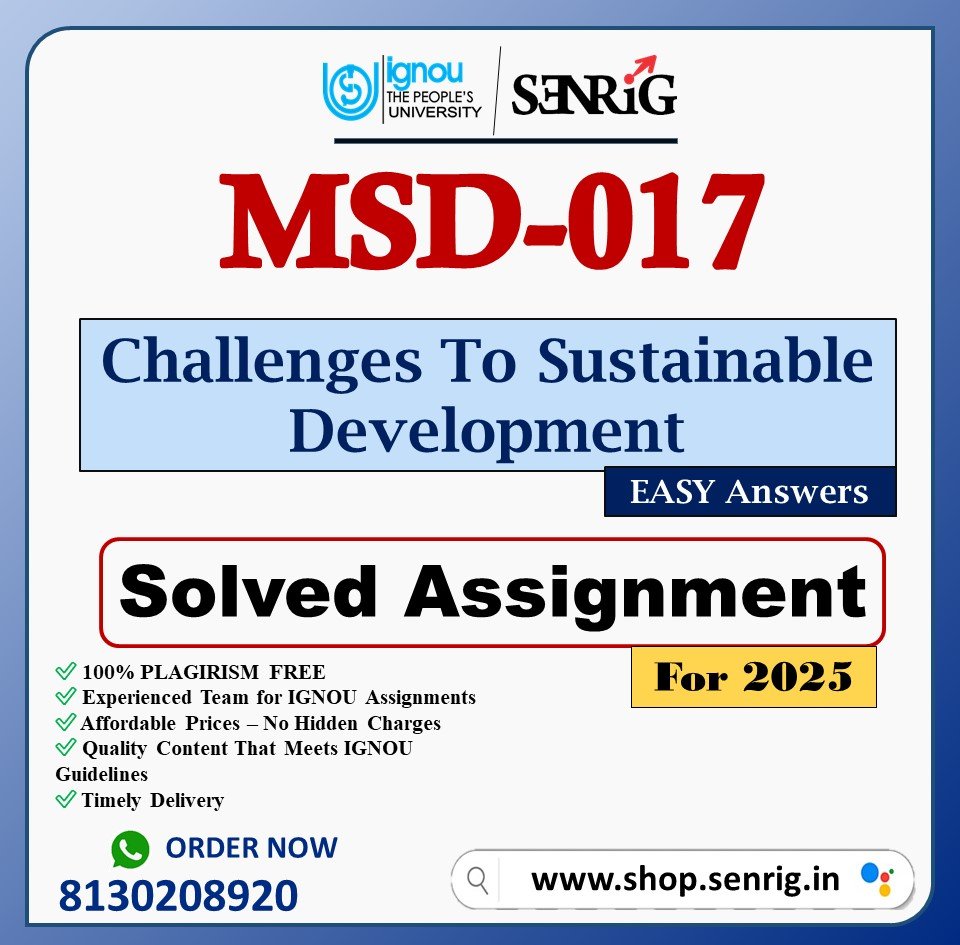 IGNOU MSD-017 Solved Assignment 2025 PDF (English) If you🌟 Struggling with Your MSD-017 Challenges to Sustainable Development Assignments? We’ve Got Your Back! 🌟 IGNOU Challenges to Sustainable Development (Latest PDF) Download ,MSD-017 assignment solution 2025. IGNOU PGDSS/MASS-1 assignment 2025, MSD-017 assignment pdf. Buy Now and Get Best Results. MSD-017 solved assignment English pdf download, buy MSD-017 latest assignment.